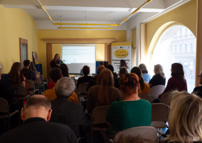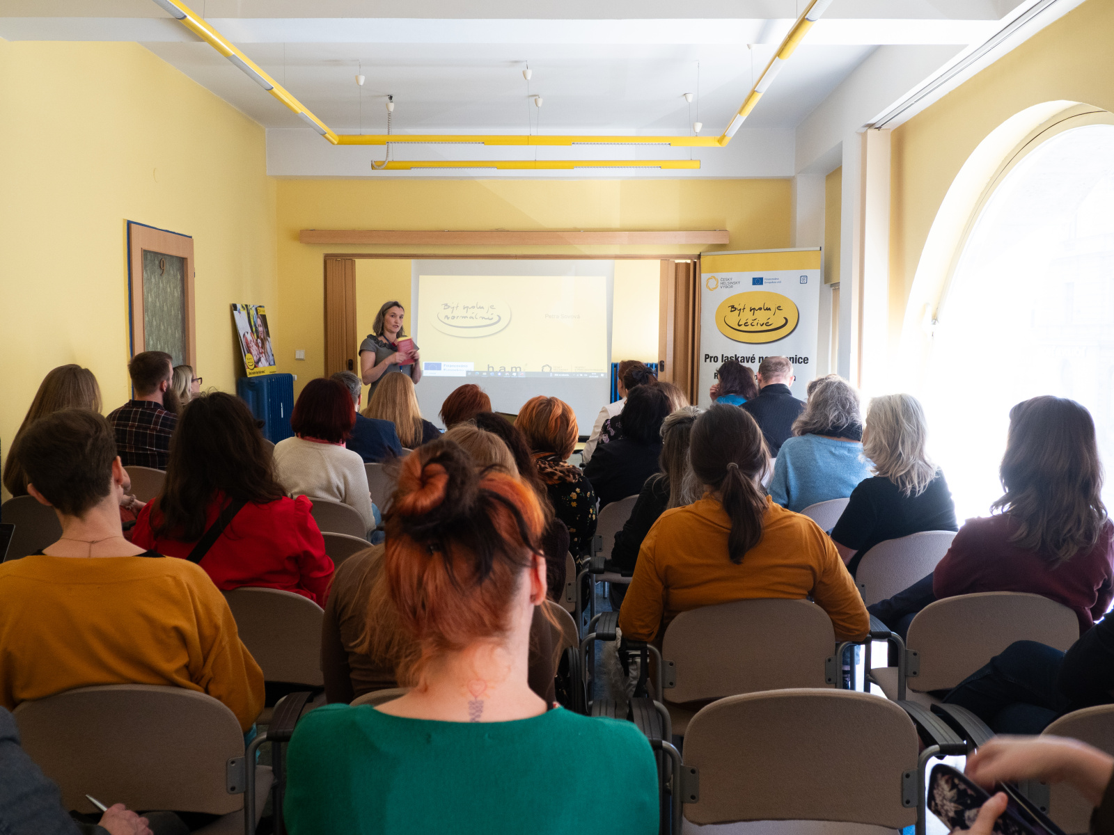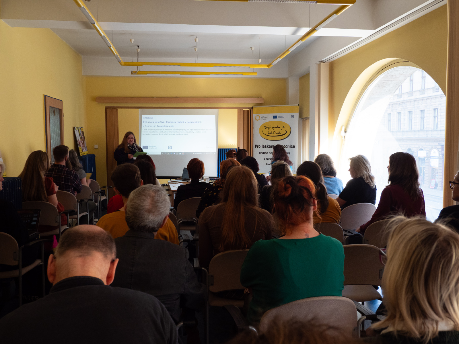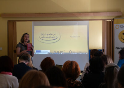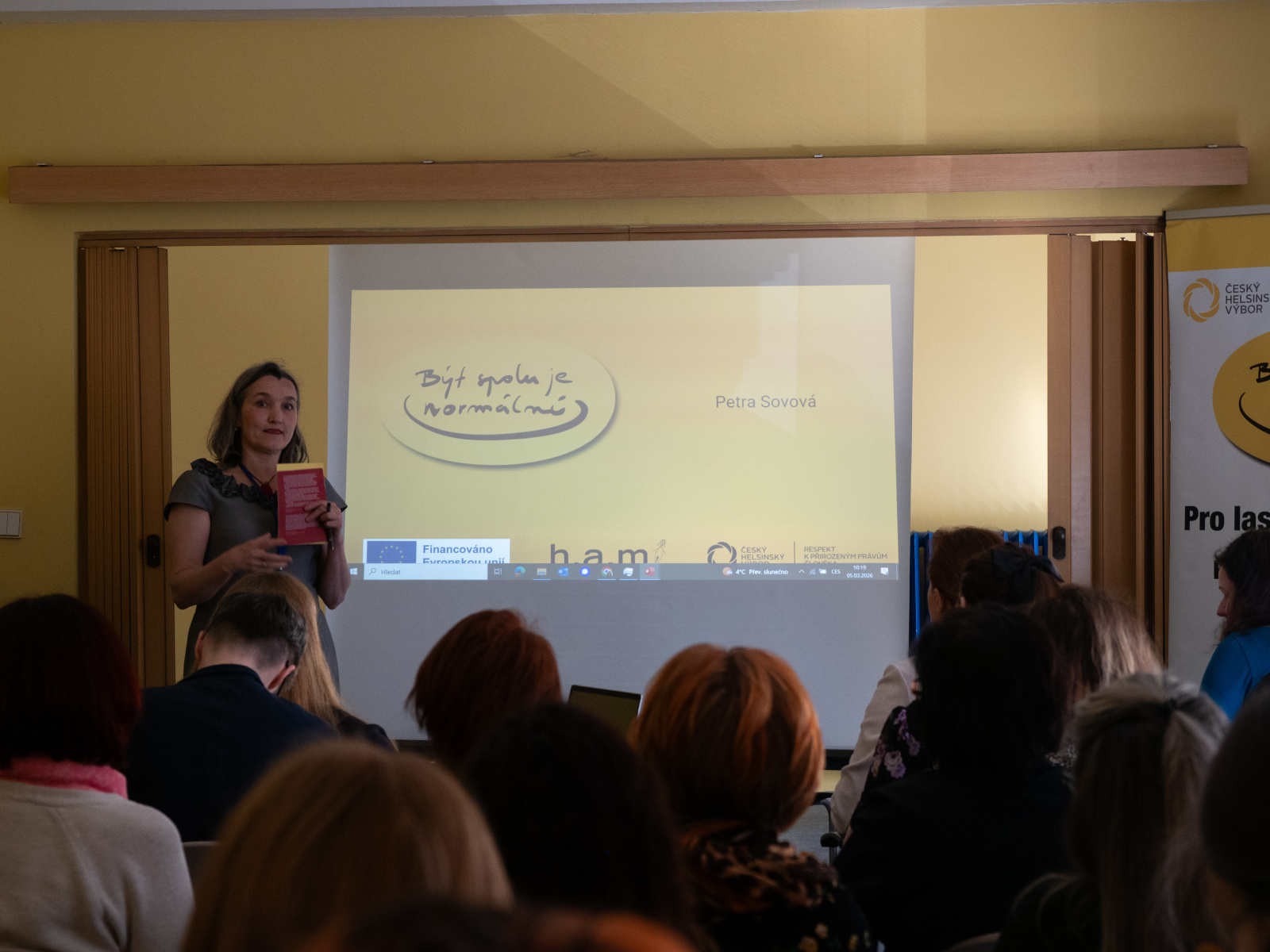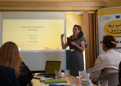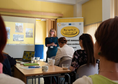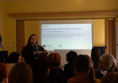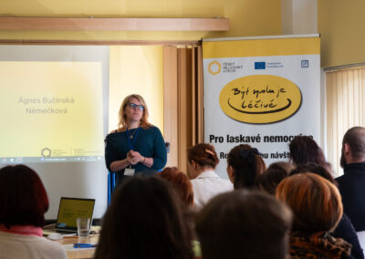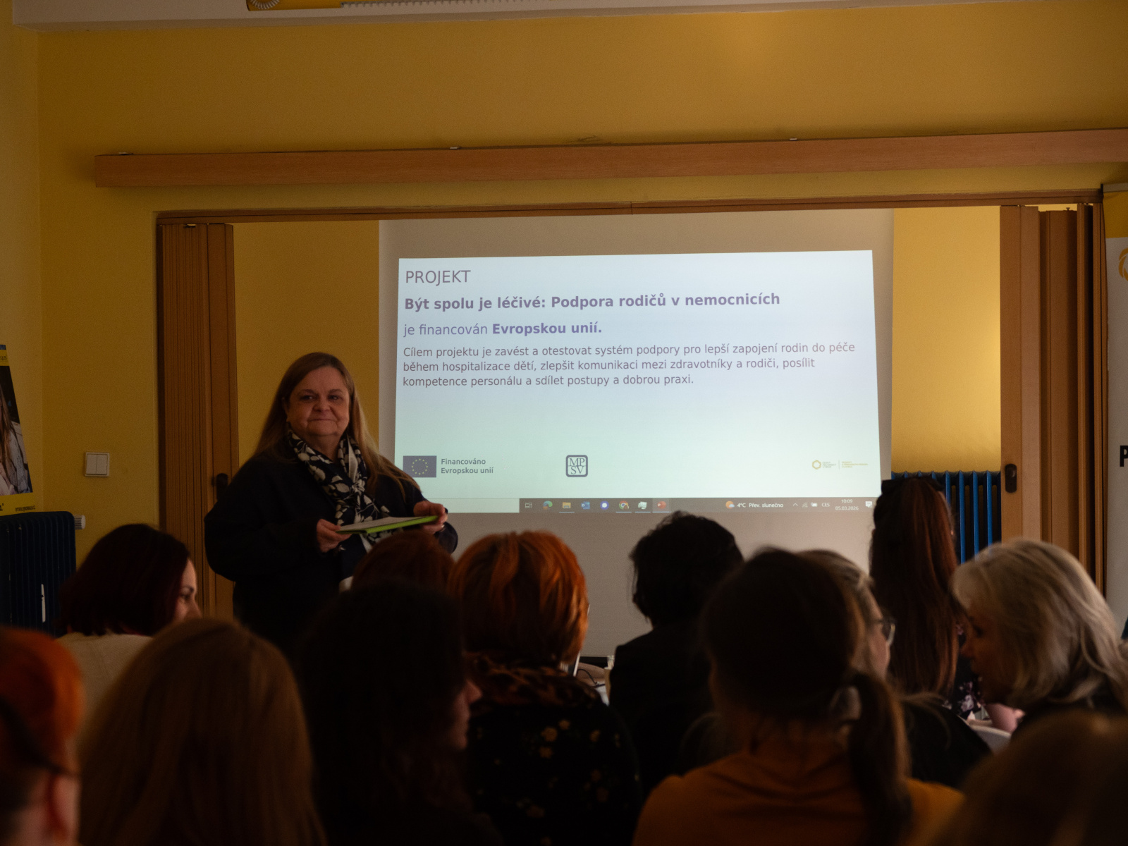 Poté předala slovo realizátorkám projektu Ágnes Bučinské Němečkové a Petře Sovové. Ty představily dosavadní průběh a první zjištění projektu Být spolu je léčivé.