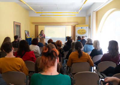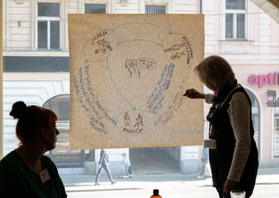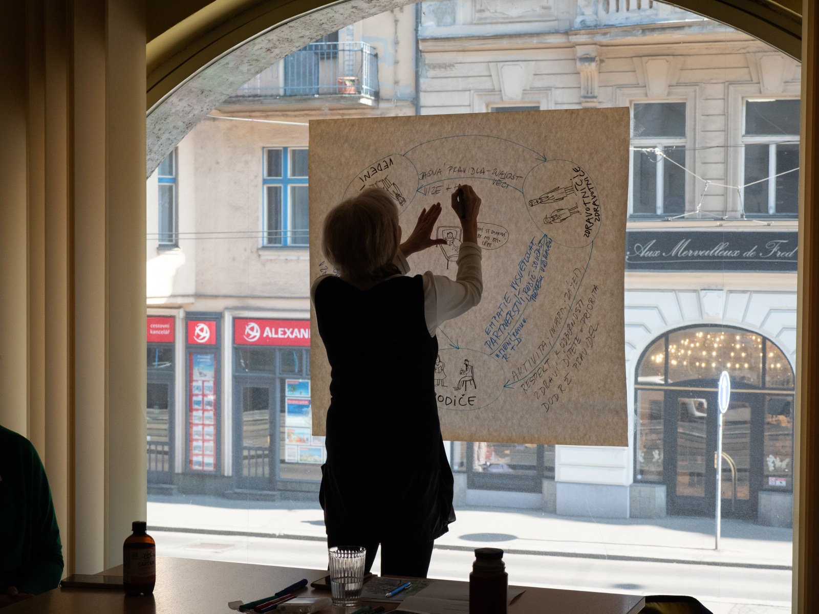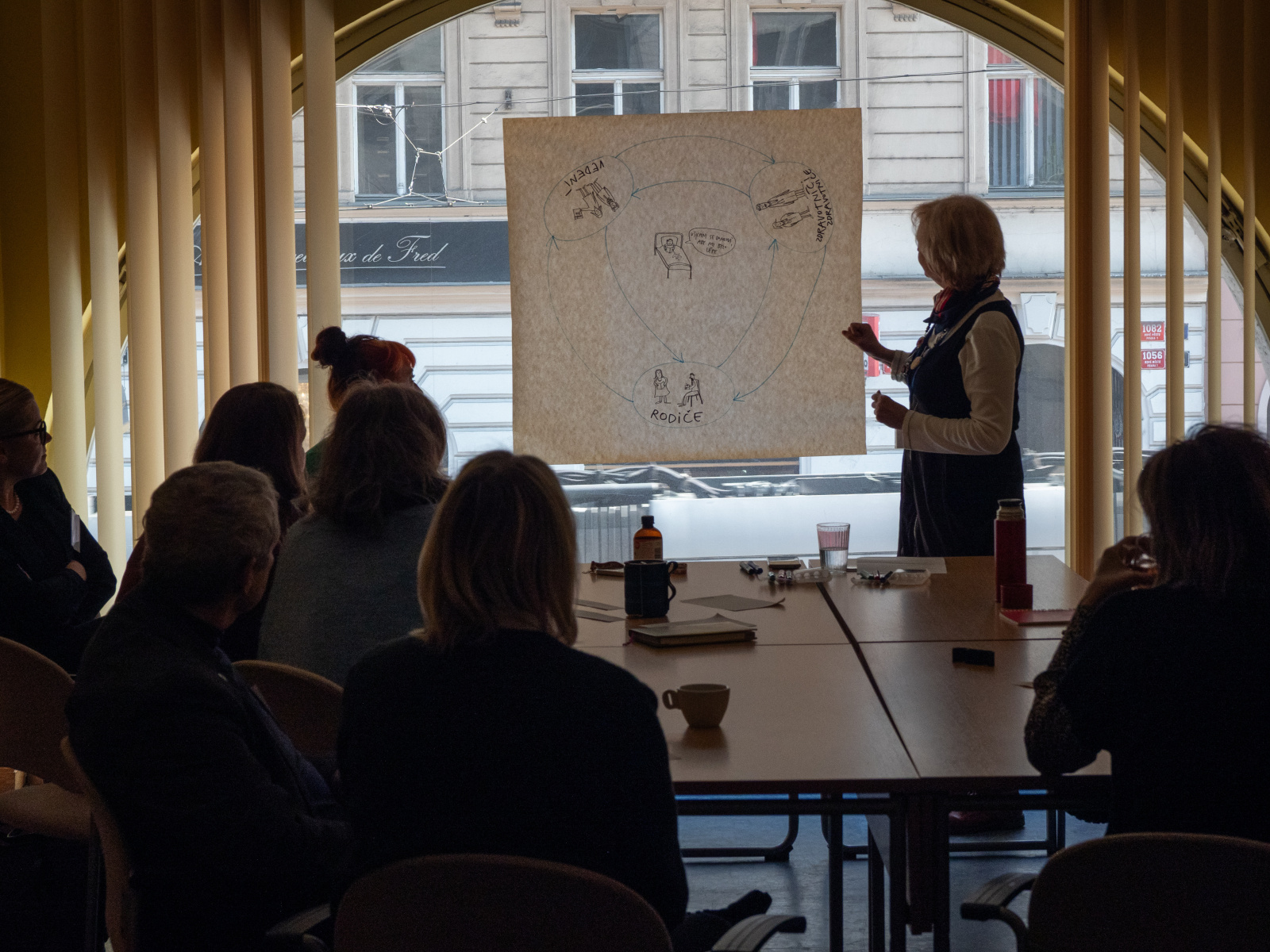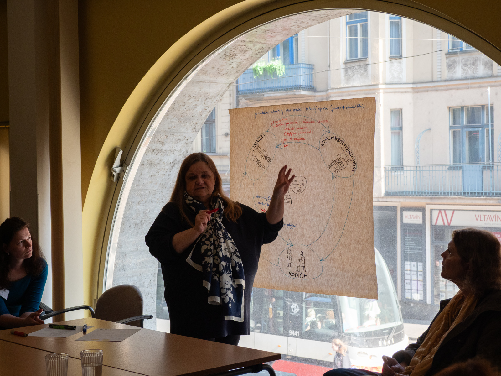 Zatímco realizátorky zpracovávaly první výstup z posbíraných map, účastníci si vyslechli přednášku psycholožky Mgr. Jany Švecové na téma Řešení konfliktních situací v přítomnosti dětí.
