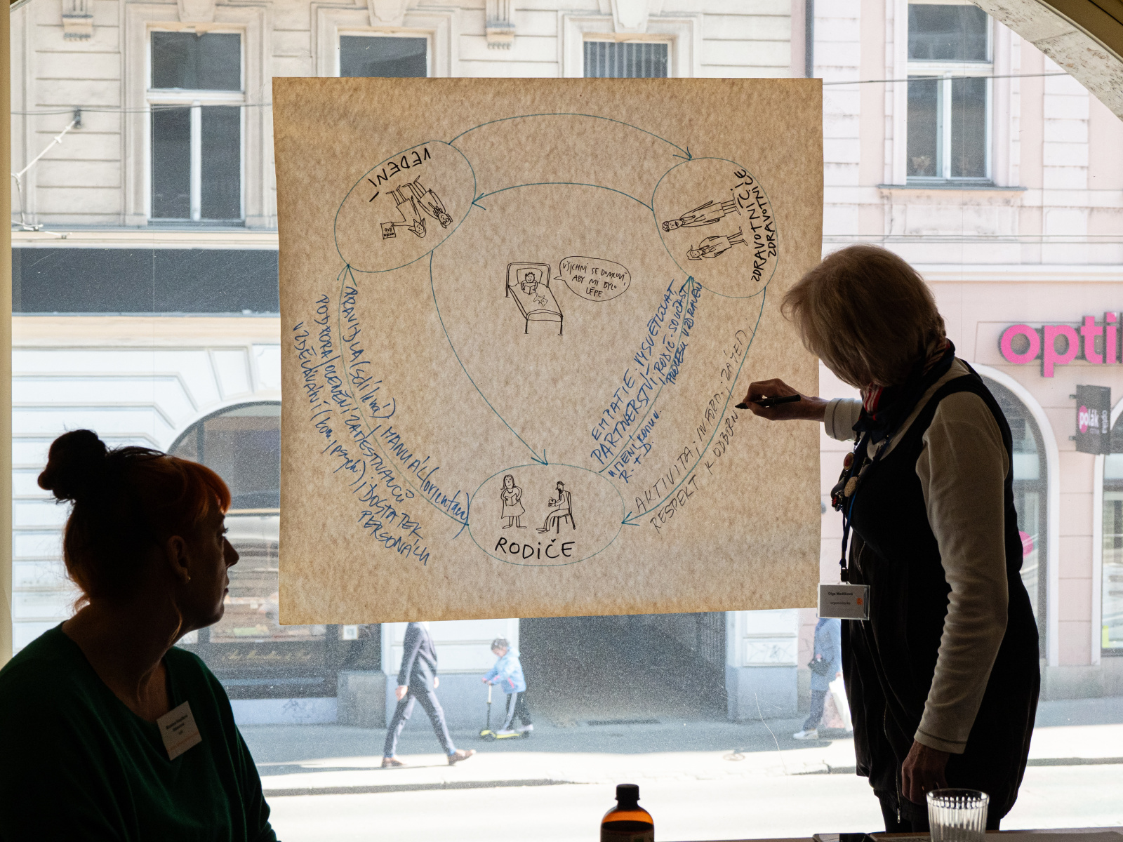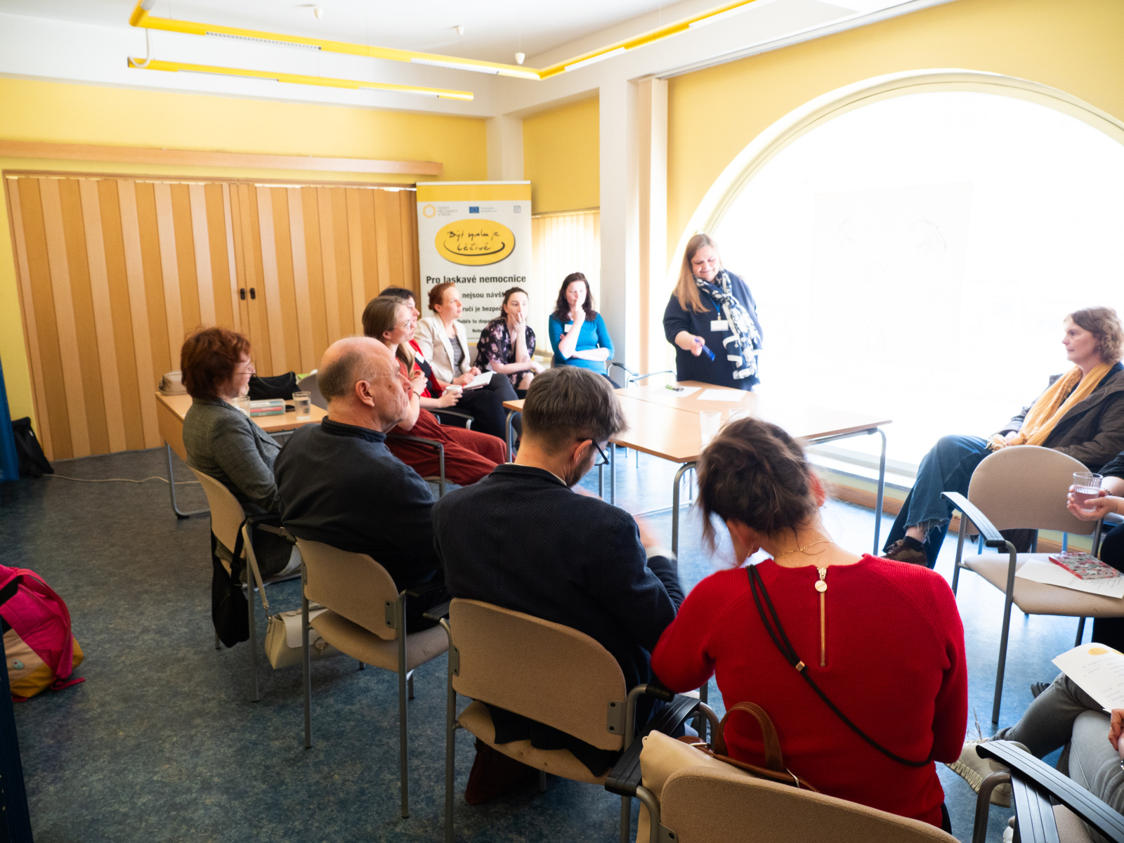 Následoval hlavní blok programu – moderovaná diskuse v několika skupinách složených rovnoměrně ze zástupců zdravotníků, rodičů a vedení nemocnic. Cílem bylo společně se zamyslet nad otázkami, co komu v systému chybí, co by potřebovali od ostatních aktérů, kteří se v systému pohybují, z čeho naopak mají obavy nebo co jim přímo vadí. Vše samozřejmě se zřetelem na nejlepší zájem dítěte a jeho uzdravení.